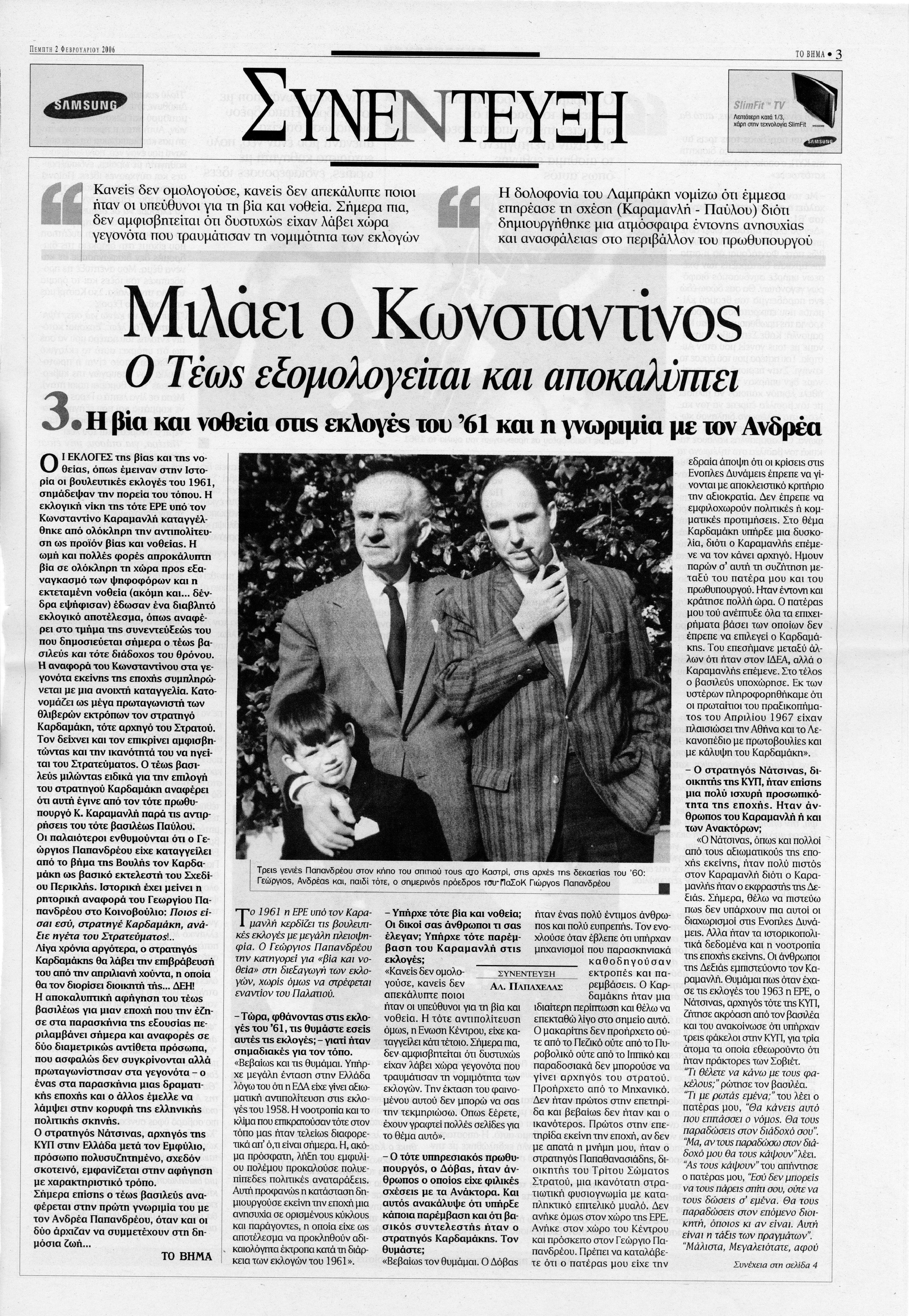 Από εφημερίδα Το Βήμα, συνέντευξη του τέως βασιλιά Κωνσταντίνου Β' στον Αλέξη Παπαχελά -- Μέρος 3ο