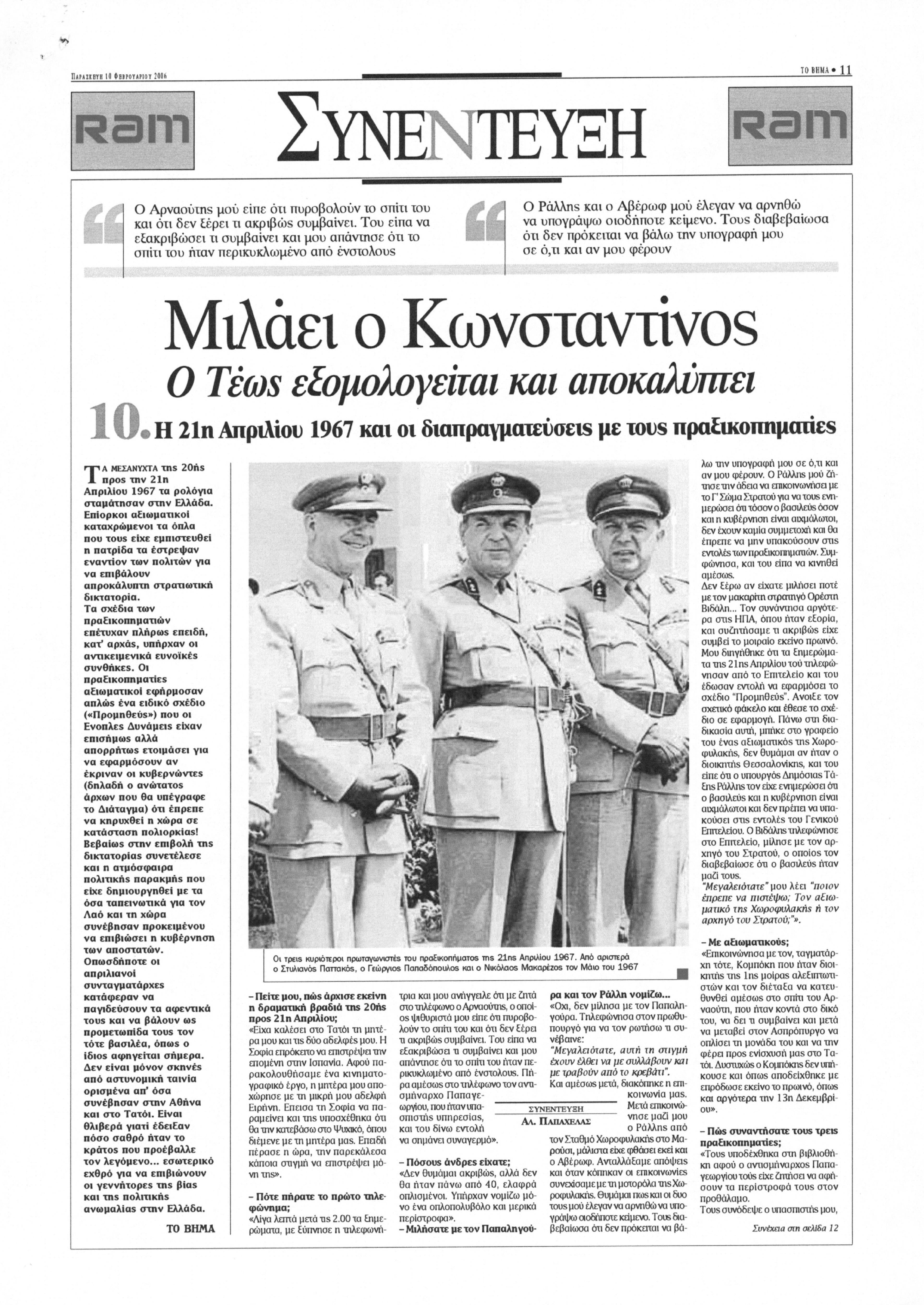 Από εφημερίδα Το Βήμα, συνέντευξη του τέως βασιλιά Κωνσταντίνου Β' στον Αλέξη Παπαχελά -- Μέρος 10ο
