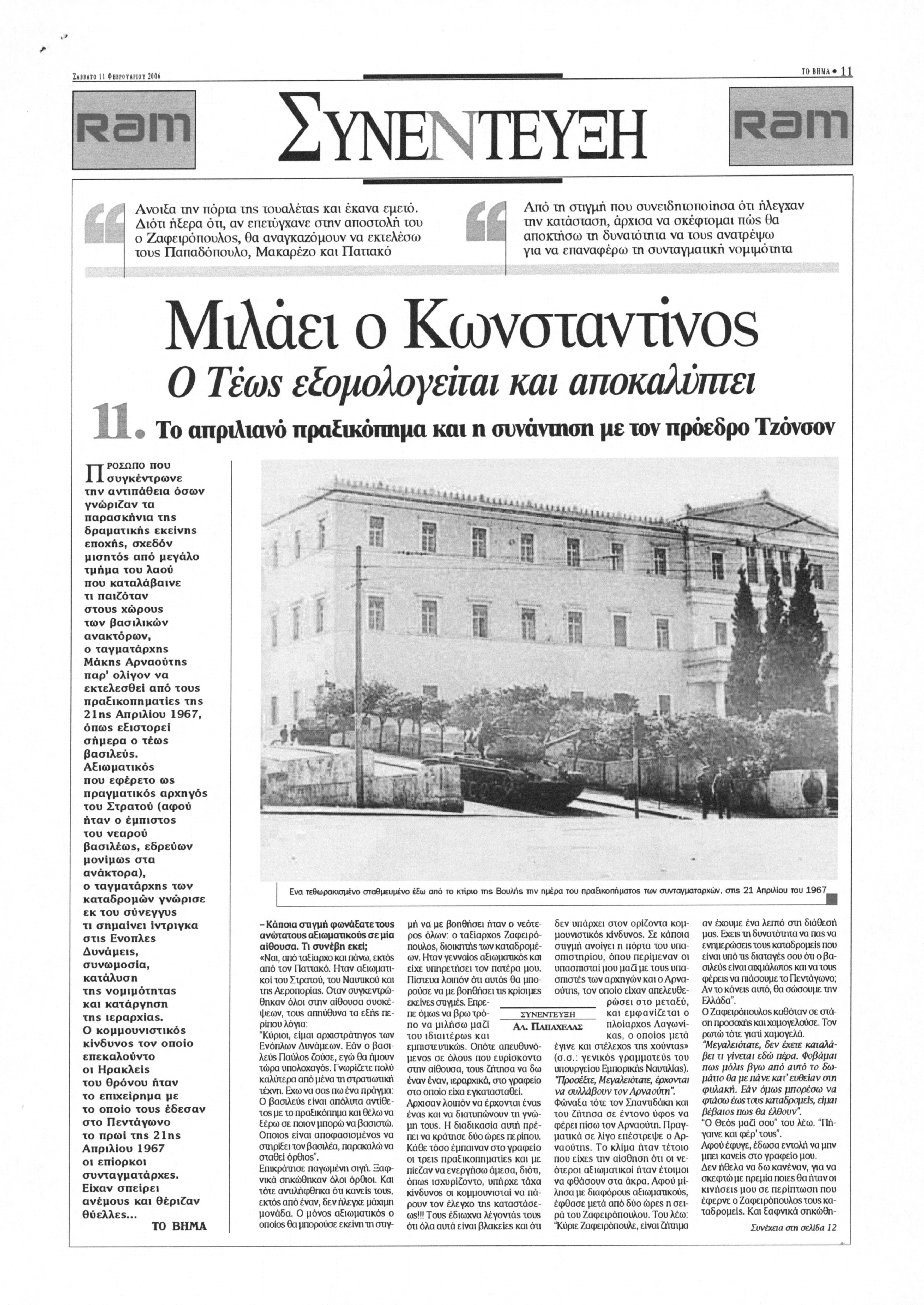 Από εφημερίδα Το Βήμα, συνέντευξη του τέως βασιλιά Κωνσταντίνου Β' στον Αλέξη Παπαχελά -- Μέρος 11ο