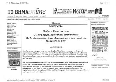 Από εφημερίδα Το Βήμα της Κυριακής, συνέντευξη του τέως βασιλιά Κωνσταντίνου Β' στον Αλέξη Παπαχελά -- Μέρος 12ο (τελευταίο)