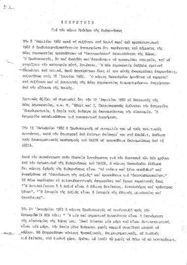 Επερώτηση για τον κ. Πρόεδρο της Κυβερνήσεως Ανδρέα Παπανδρέου, σχετικά με δηλώσεις του περί προσπάθειας υπονόμευσης του εθνικού νομίσματος από παράγοντες του κόμματος της ΝΔ