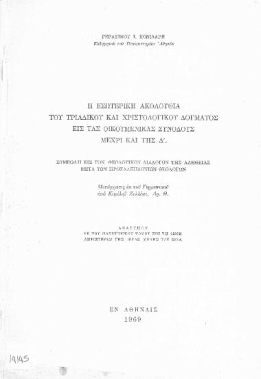 Η εσωτερική ακολουθία του τριαδικού και χριστολογικού δόγματος εις τας οικουμενικάς συνόδους μέχρι και της Δ' : συμβολή εις τον θεολογικόν διάλογον της αλήθειας μετά των προχαλκηδονίων θεολόγων