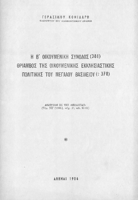 Η Β' Οικουμενική Σύνοδος (381) θρίαμβος της οικουμενικής εκκλησιαστικής πολιτικής του Μεγάλου Βασιλείου (+378)