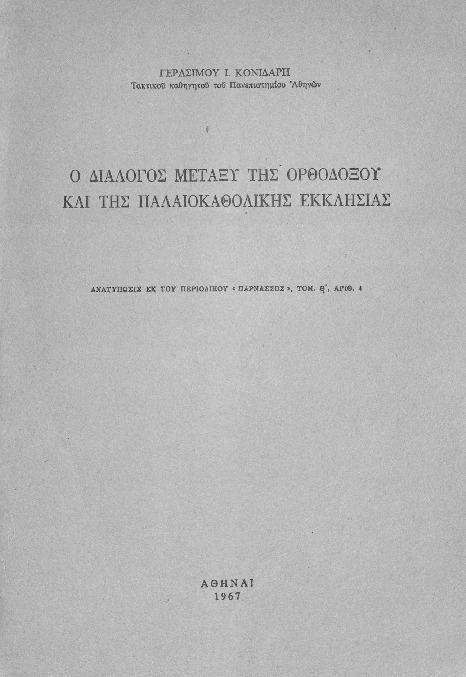 Ο διάλογος μεταξύ της ορθοδόξου και της παλαιοκαθολικής εκκλησίας