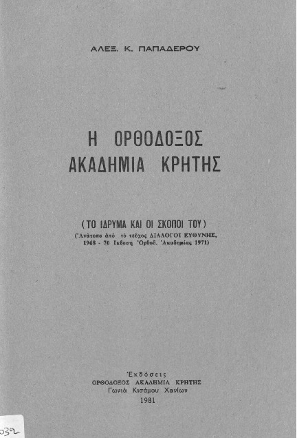 Η Ορθόδοξος Ακαδημία Κρήτης: (το ίδρυμα και οι σκοποί του)