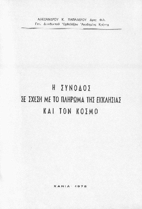 Η σύνοδος σε σχέση με το πλήρωμα της εκκλησίας και τον κόσμο: εισήγηση στο Παγκρήτιο Θεολογικό Συνέδριο