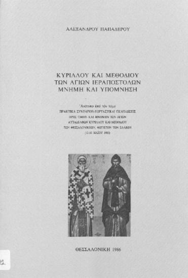 Κυρίλλου και Μεθοδίου των αγίων ιεραποστόλων: μνήμη και υπόμνηση