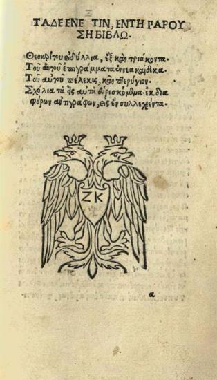 Τάδε ἔνε[σ]τιν, ἐν τῇ παρούσῃ βίβλῳ. Θεοκρίτου εἰδύλλια... ἐπιγράμματα... πέλεκυς, καὶ πτερύγιον. Σχόλια...