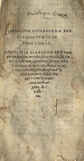 Florilegium diversoroum epigrammatum... Ἀνθολογία διαφόρων ἐπιγραμμάτων, ἀρχαίοις συντεθειμένων σοφοῖς...