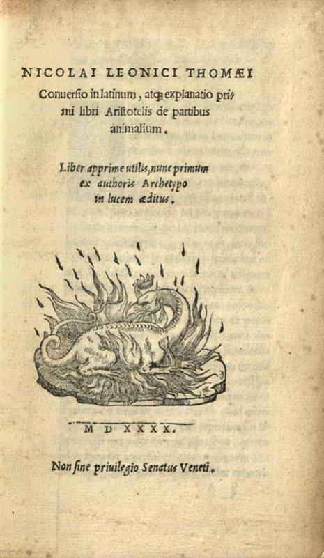 Nicolai Leonici Thomaei Conversio... explanatio primi libri Aristotelis de partibus animalium...