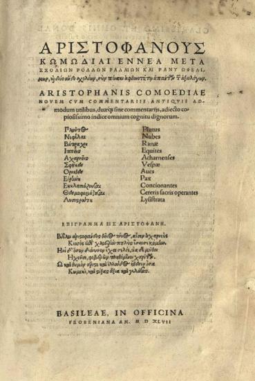 Ἀριστοφάνους Κωμωδίαι Ἐννέα μετὰ σχολίων...