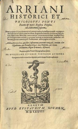 Arriani Historici et Philosophi Ponti Euxini & maris Erytraei Periplus, ad Adrianum Casarem... Io Guilielmo Stuckio Tigurino authore...