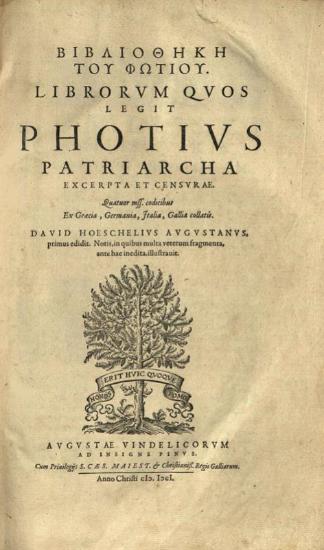 Βιβλιοθήκη τοῦ Φωτίου, David Hoeschelius Augustanus, primus edidit...