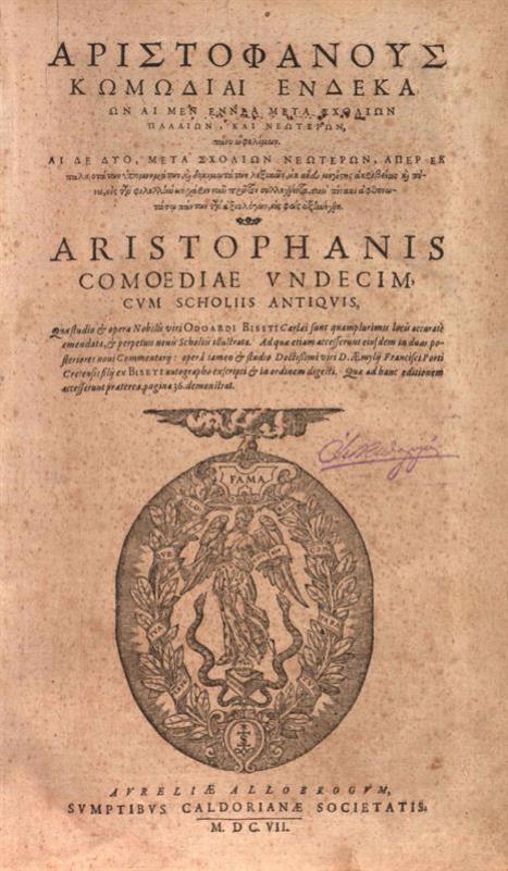 Ἀριστοφάνους Κωμωδίαι Ἕνδεκα..., opera... Odoardi Biseti...