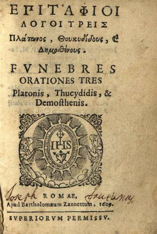 Ἐπιτάφιοι Λόγοι τρεῖς Πλάτωνος, Θουκυδίδου, & Δημοσθένους...