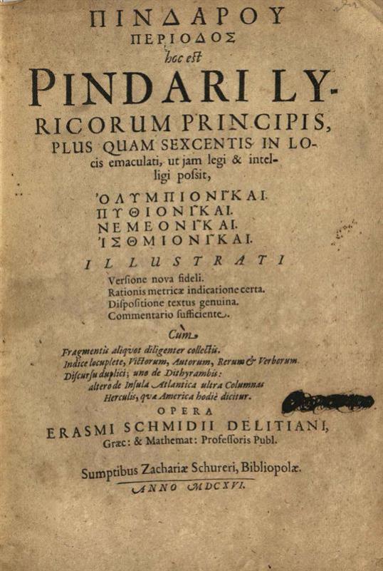 Πινδάρου Περίοδος hoc est Pindari Lyricorum Principis... Opera Erasmi Schmidii Delitiani...