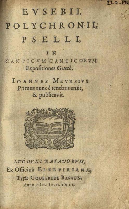 ...in Canticum Canticorum Expositiones Graecè. Ioannes Meursius... eruit...