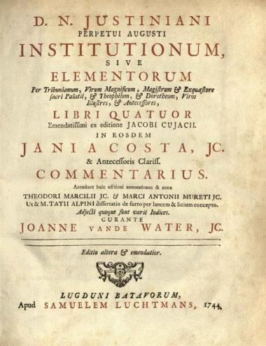 Institutionum sive Elementorum per Tribunianum, Virum Magnificum...