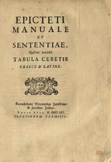 Epicteti Manuale et Sententiae Quibus accedit. Tabula Cebetis Graece & Latine
