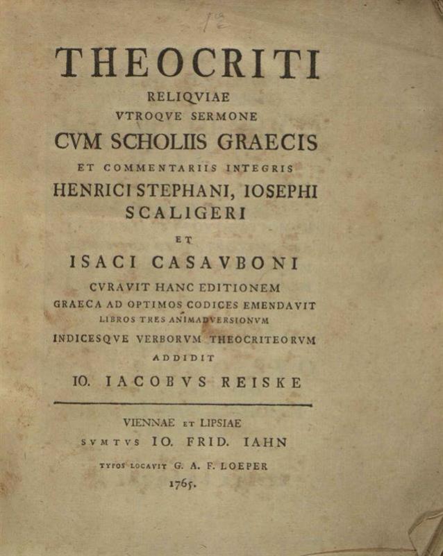 Theocriti Reliquae Utrogue Sermonecum scholiis Graecis et commentariis integris... H. Stephani, I. Scaligeri