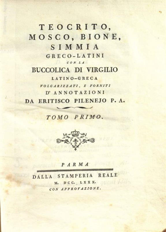 Simmia Greco-latini con la Buccolica di Virgili Latino-Graeca volgarizzati... da Eritisco Pilenejo...