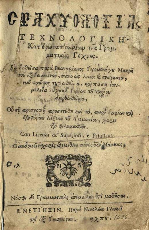Σταχυολογία Τεχνολογικὴ κατ᾽ ἐρωταπόκρισιν τῆς Γραμματικῆς Τέχνης...