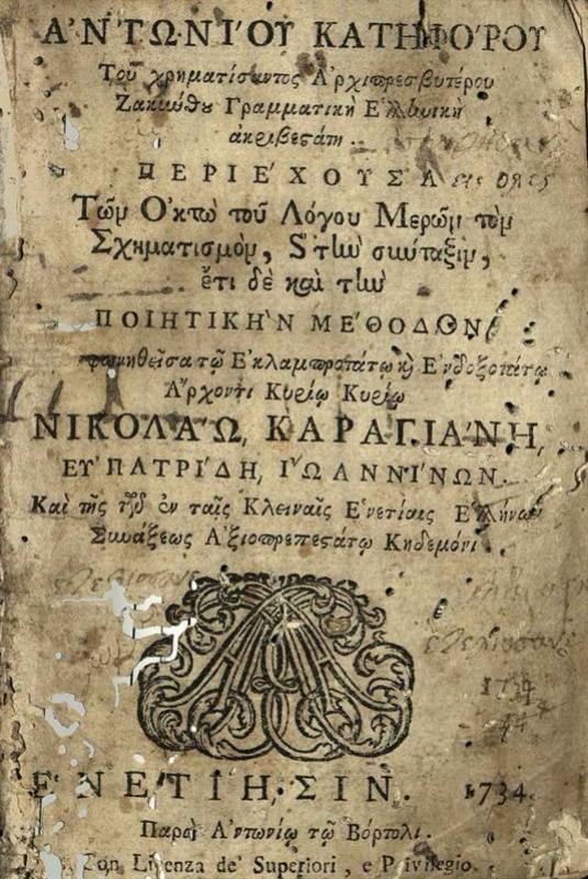 Ἀντωνίου Κατηφόρου... Γραμματικὴ Ἑλληνικὴ…