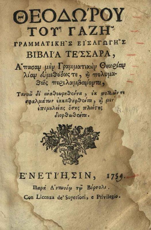 Θεοδώρου τοῦ Γαζῆ Γραμματικῆς Εἰσαγωγῆς βιβλία τέσσαρα...