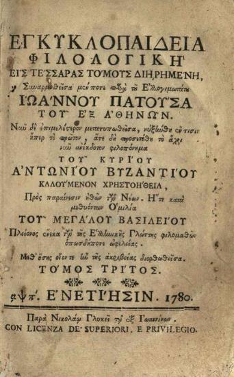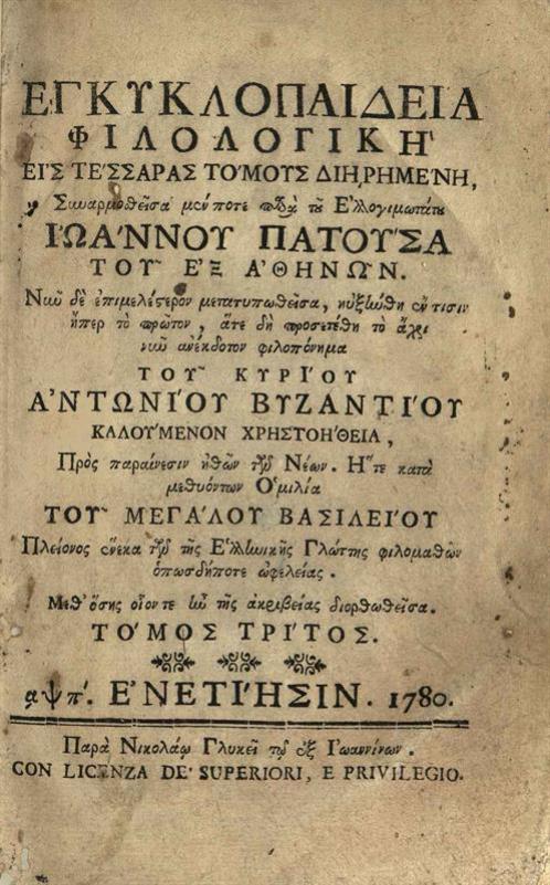 Ἐγκυκλοπαιδεία Φιλολογικὴ... προσετέθη... Αντωνίου Βυζαντίου... Χρηστοήθεια...