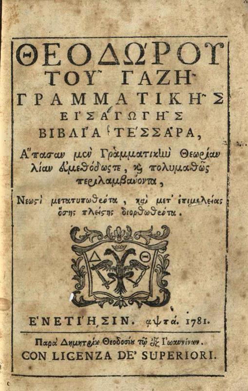 Θεοδώρου τοῦ Γαζῆ Γραμματικῆς Εἰσαγωγῆς βιβλία τέσσαρα...