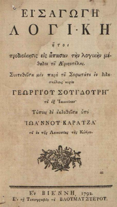 Εἰσαγωγὴ Λογική, ἤτοι προδιοίκησις εἰς ἅπασαν τὴν λογικὴν μέθοδον τοῦ Ἀριστοτέλους...