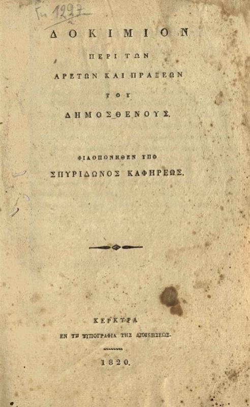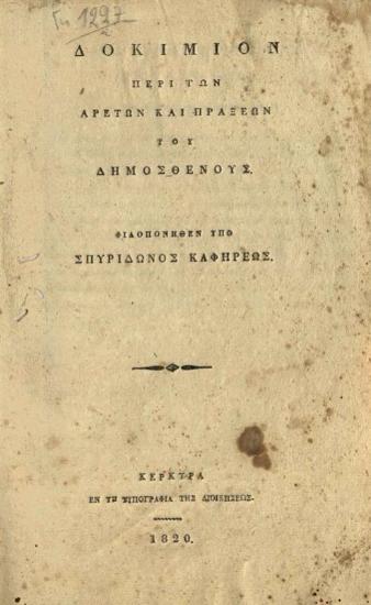 Δοκίμιον περὶ τῶν Ἀρετῶν καὶ Πράξεων τοῦ Δημοσθένους...