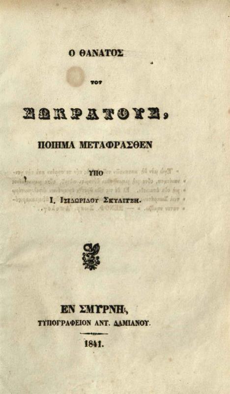 Ὁ θάνατος τοῦ Σωκράτους, ποίημα μεταφρασθὲν ὑπὸ Ι. Ἰσιδώρου Σκυλίτση