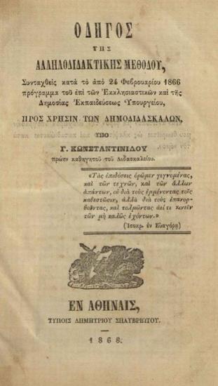 Ὁδηγὸς τῆς ἀλληλοδιδακτικῆς μεθόδου...