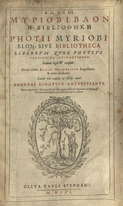 Φωτίου Μυριόβιβλον — Photii Myriobiblon — Latinè verò reddidit et scholiis auxit Andreas Schottus Antverpianus —