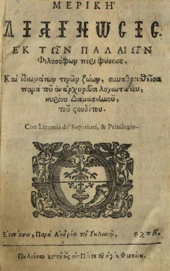 Μερικὴ διάγνωσις ἐκ τῶν παλαιῶν φιλοσόφων περὶ φύσεως —