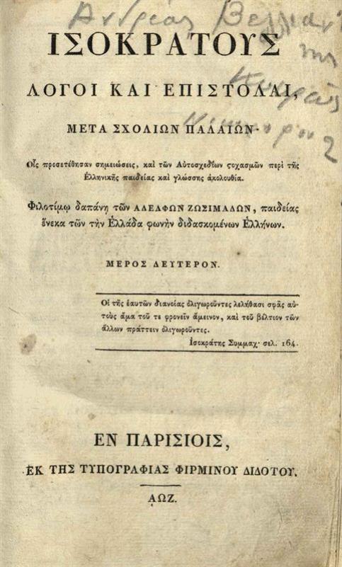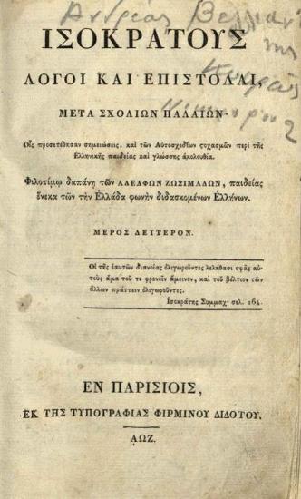 Ἰσοκράτους Λόγοι καὶ Ἐπιστολαὶ... Μέρος Δεύτερον... [Ἑλληνικῆς Βιβλιοθήκης Τόμος Δεύτερος]