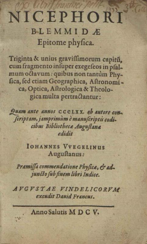 Nicephori Blemmidae Epitome logica — Opera et studio Ioh. Uvegelini Augustani