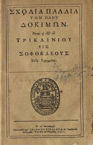 Σχόλια παλαιὰ τῶν πάνυ δοκίμων, Μετὰ καὶ των τοῦ Τρικλινίου εἰς Σοφοκλέους Ἑπτὰ Τραγωδίας ---