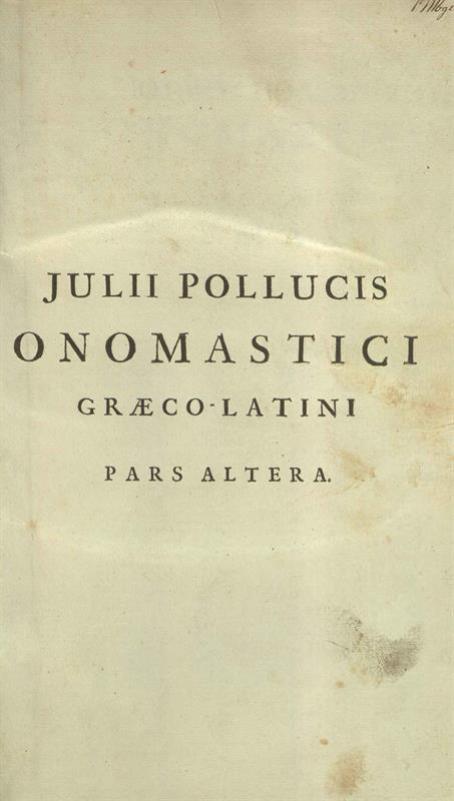 Julii Pollucis Onomastici Graeco - Latini. Pars altera