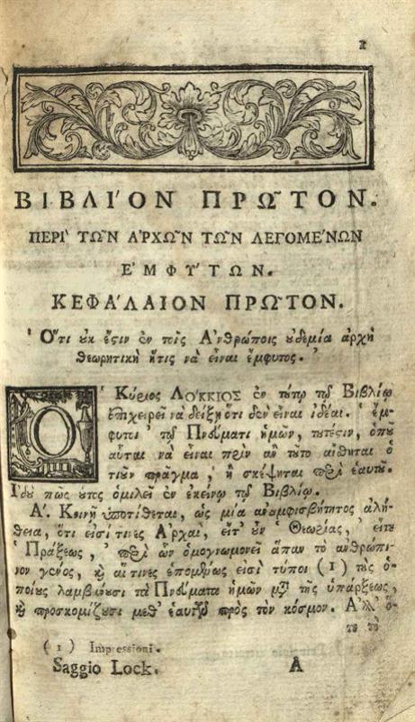 Λόκκιος (John Locke). Ἐγχειρίδιον Μεταφυσικο-διαλεκτικὸν ἢ Ἐπιτομὴ ἀκριβεστάτη τοῦ Δείγματος... περὶ τῆς ἀνθρωπίνης διανοίας... Μεταφρασθεῖσα [ὑπὸ Ἰωάννη Λιτίνου]..., Βενετία, Νικόλαος Γλυκύς, 1796.