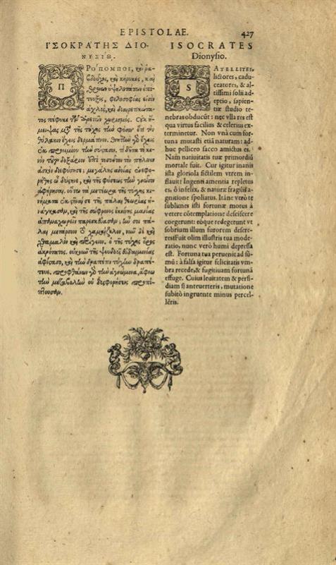 Ἰσοκράτης. Ἰσοκράτους Λόγοι καὶ Ἐπιστολαὶ..., cum latina interpretatione Hier. Wolfi... Henr. Steph. in Isocratem Diatribae VII... [Γενεύη], Henricus Stephanus, 1593.