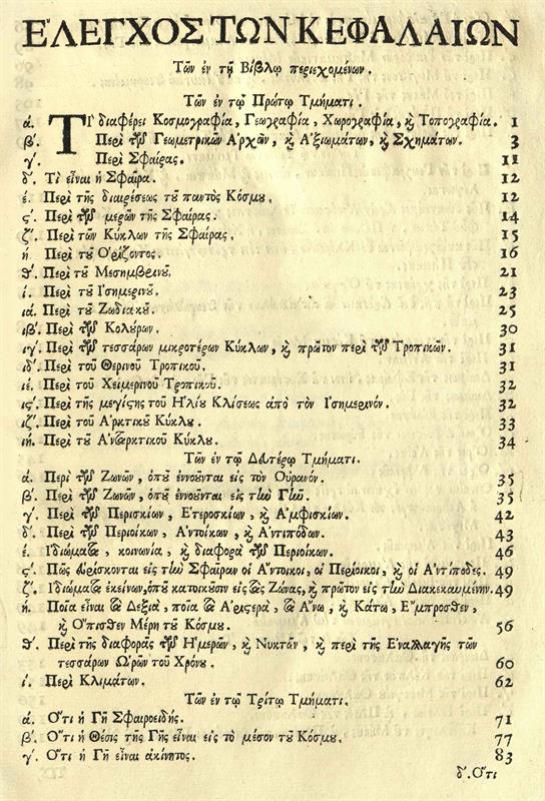 Χρύσανθος Νοταρᾶς. Χρυσάνθου Νοταρᾶ... Εἰσαγωγὴ εἰς τὰ Γεωγραφικά, καὶ Σφαιρικὰ..., Παρίσι [= Βενετία, Α. Βόρτολις], 1716.