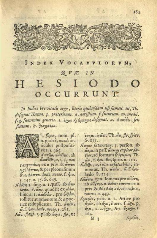Ἡσίοδος. Ἡσιόδου Ἀσκραίου Τὰ Εὑρισκόμενα, Studio Cornelii Schrevelii..., Ἄμστερνταμ, Ludovicus & Danielis Elzeviriorum, 1657.