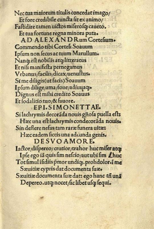 Μιχαὴλ Μάρουλλος Ταρχανιώτης. Epigrammaton Michaelis Marulli Constantinopolitani..., Ρώμη, Eucharius Silber, c. 1486-1490.