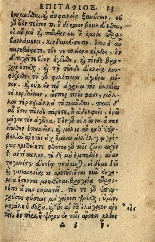 Ἐπιτάφιοι Λόγοι τρεῖς Πλάτωνος, Θουκυδίδου, & Δημοσθένους..., Ρώμη, Bart. Zannetti, 1609.