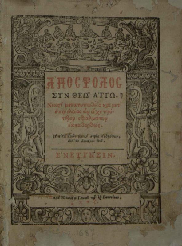 Ἀπόστολος σὺν Θεῷ Ἁγίῳ..., Βενετία, Νικόλαος Γλυκύς, 1687.