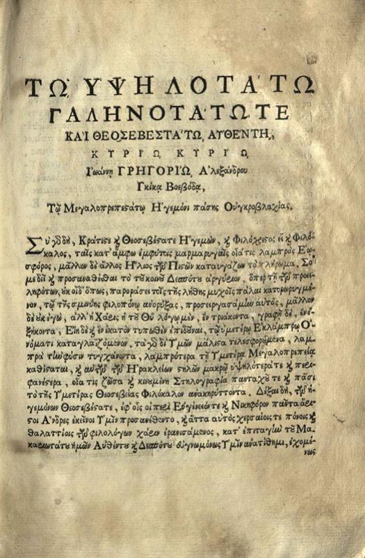 Νεόφυτος Καυσοκαλυβίτης. Θεοδώρου Γραμματικῆς Εἰσαγωγῆς..., Βουκουρέστι, ἐν τῇ Νεουργηθείσῃ Τυπογραφίᾳ, 1768.