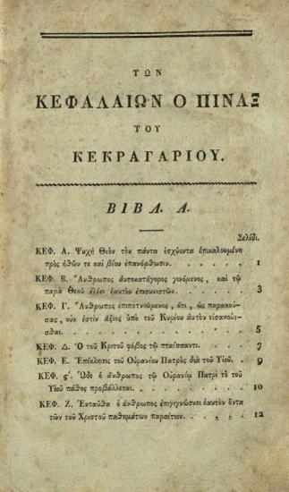Αὐγουστίνος. Τὸ Κεκραγάριον... Ὑπὸ... Ε[ὐγενίου] τοῦ Β[ουλγάρεως] ἐξερμηνευθεῖσα..., Μόσχα, Τυπογραφεῖο Αὐγούστου τοῦ Σεμένου, 1824.
