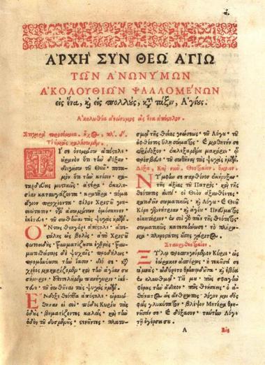 Ἀκολουθίαι τῶν Ἀνωνύμων... Ἀκολουθία... Μεταλήψεως... Λειτουργίαι... Ἀποστολο-Εὐαγγέλια... [Ρώμη, Τυπογραφεῖο Propaganda Fide], 1738.